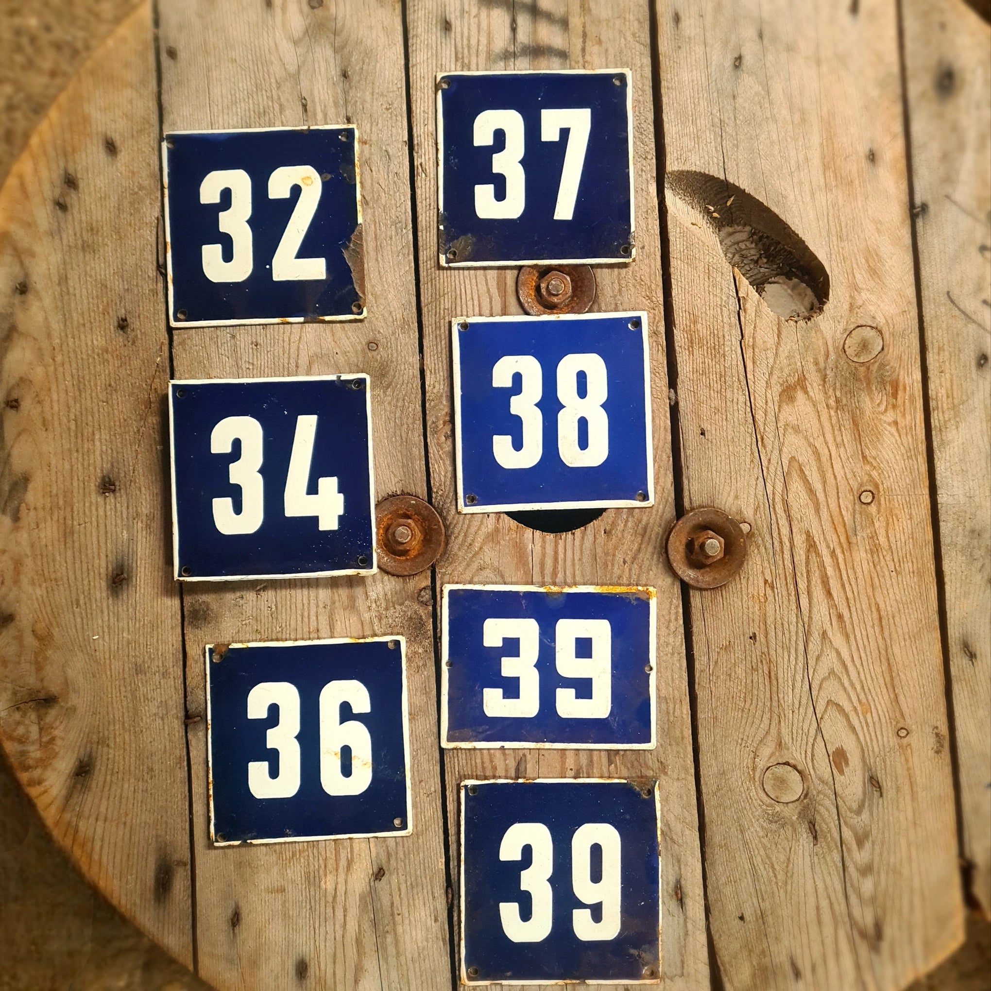 Emaille huisnummers blauw/wit