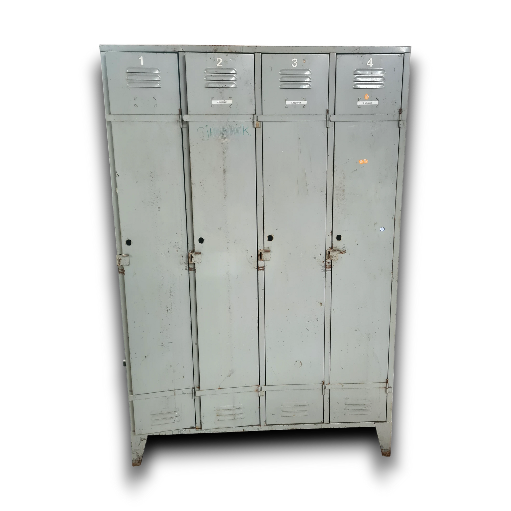 Industriële 4-deurs Lockerkast – Stoere Metalen Opbergkast met Authentieke Look