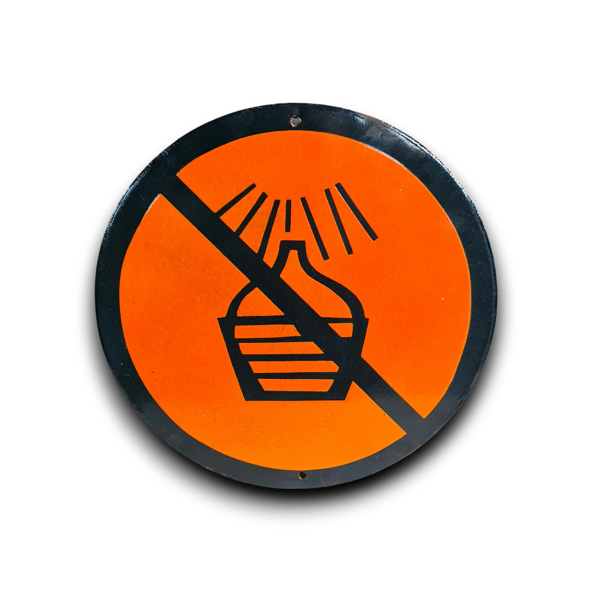 Met zijn authentieke patina en robuuste uitstraling is dit bord de perfecte toevoeging aan een stoere mancave, een industrieel kantoor of een vintage keuken. Het vertelt een verhaal van hard werken en noeste arbeid, een eerbetoon aan de tijden dat waarschuwingen nog met de hand werden gemaakt en opgehangen. Dit is meer dan alleen een decoratiestuk; het is een iconisch fragment van oud fabrieksinventaris.
