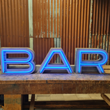BAR neon letters in blauw