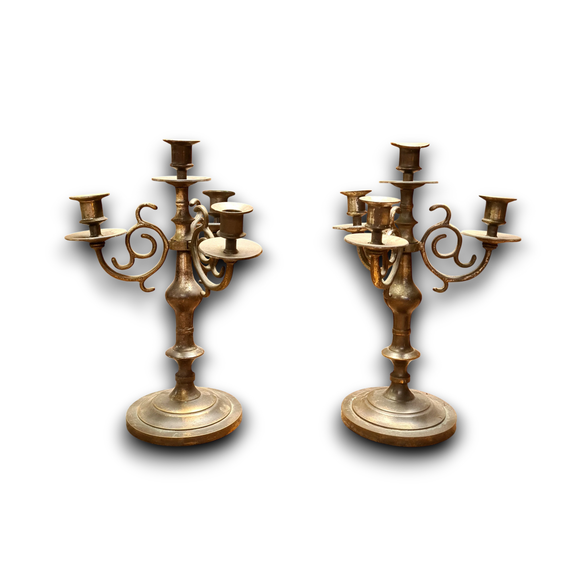 Breng een warme, sfeer in huis met deze gezellige set oude kandelaren. Met hun sierlijke vorm en vier armen geven ze elk hoekje van je woonkamer, eettafel of dressoir een vleugje nostalgie.