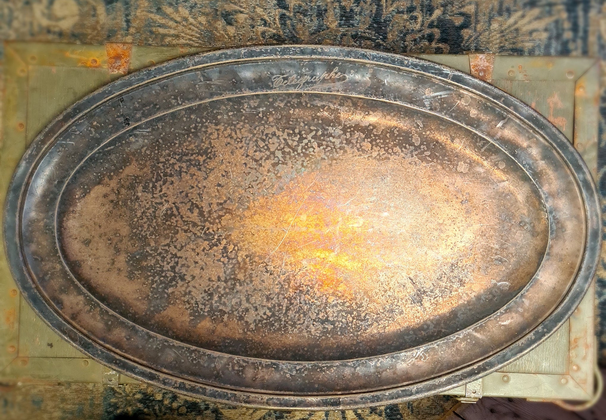 Oud Verzilverd Dienblad met Inscriptie “Télégraphe” – Antiek Frans Decoratieobject